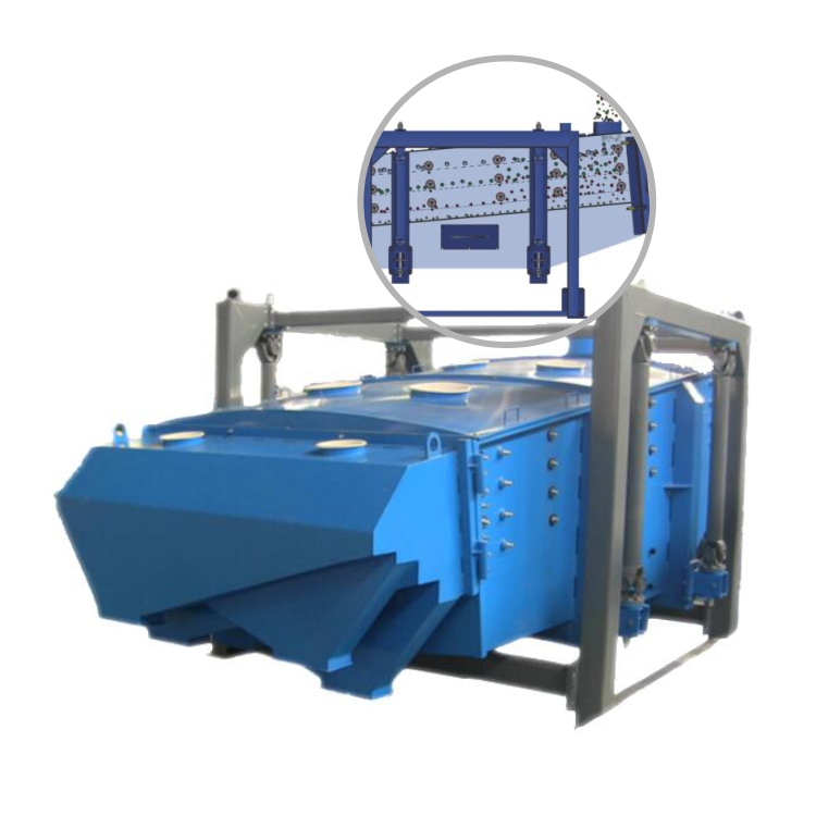 因此建立水平與拋擲三維翻滾運(yùn)動。物料從中心到外緣在整個(gè)篩面上均勻分散,從而以螺旋運(yùn)動往軸向傳播。細(xì)小顆粒從而完成了整個(gè)篩分過程。