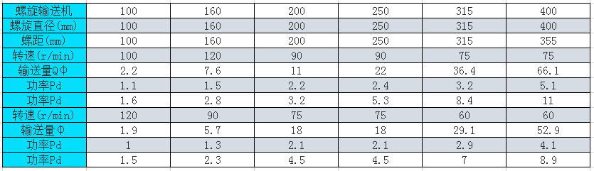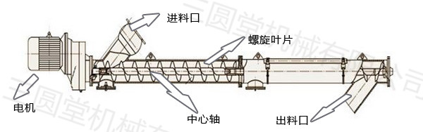 旋轉的螺旋葉片將物料推移而進行螺旋輸送機輸送,使物料不與螺旋輸送機葉片一起旋轉的力是物料自身重量和螺旋輸送機機殼對物料的摩擦阻力。螺旋輸送機旋轉軸上焊的螺旋葉片,葉片的面型根據輸送物料的不同有實體面型、帶式面型、葉片面型等型式。螺旋輸送機的螺旋軸在物料運動方向的終端有止推軸承以隨物料給螺旋的軸向反力,在機長較長時,應加中間吊掛軸承
